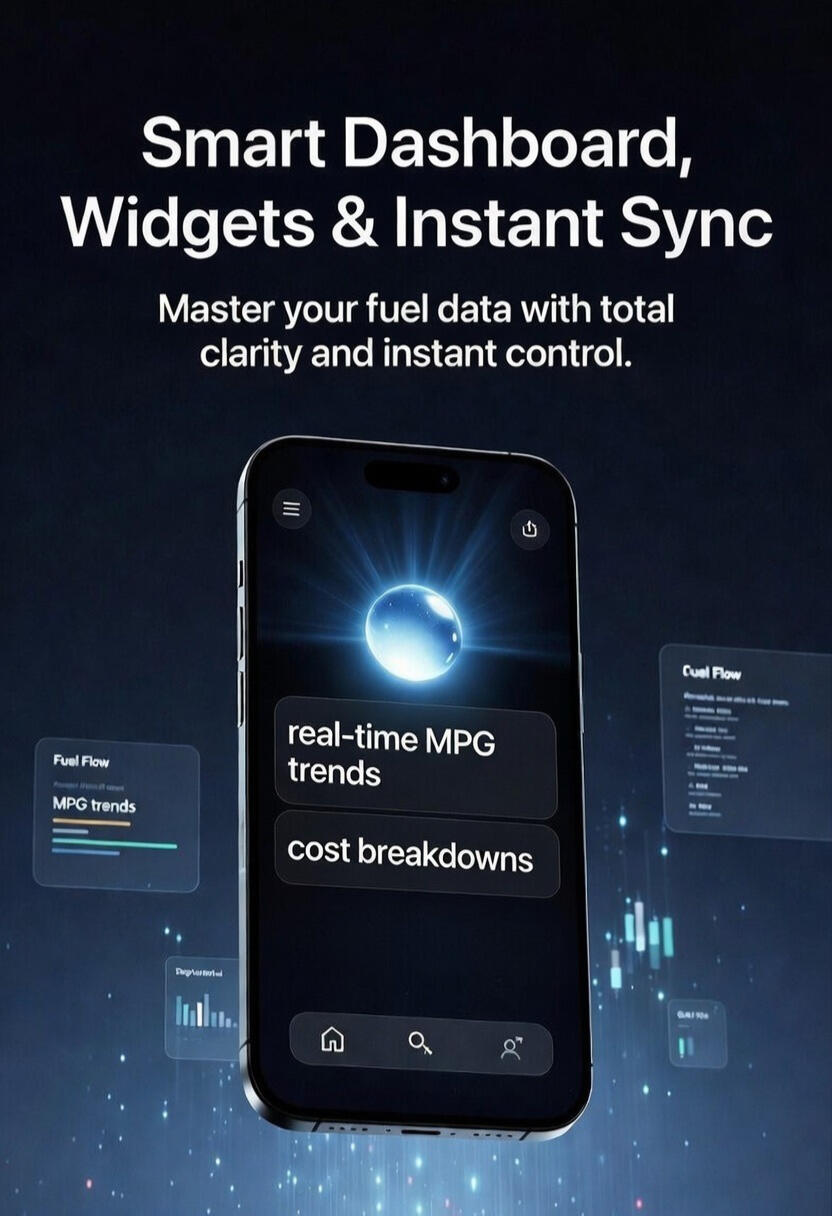 Master your fuel data with a stunning customizable dashboard and powerful advanced analytics — see efficiency trends, cost breakdowns, MPG insights, and savings forecasts at a glance.
